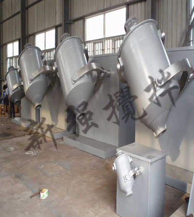 SYH系列三維運(yùn)動(dòng)混合機(jī)裝料的筒體在主動(dòng)軸的帶動(dòng)下,作周而復(fù)始的平移轉(zhuǎn)動(dòng)和翻滾等復(fù)合運(yùn)動(dòng),促使物料沿著筒體作環(huán)向、徑向和軸向的三向復(fù)合運(yùn)動(dòng),從而實(shí)現(xiàn)多種物料的相互流動(dòng)、擴(kuò)散、集聚、參雜、達(dá)到均勻混合的目的。